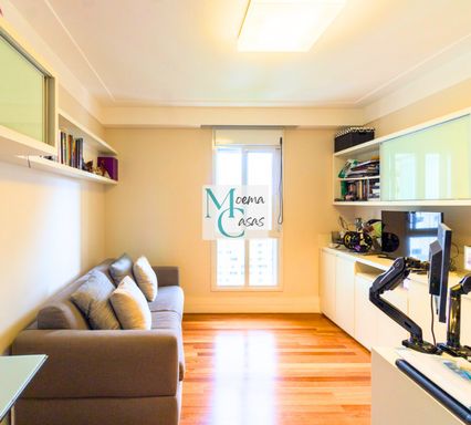 O apartamento conta com 3 suítes amplas, todas com piso em madeira e banheiros renovados com materiais nobres. A suíte master se destaca pelo conforto e pelo elegante walk-in closet. Além disso, o imóvel possui 2 escritórios funcionais, sendo um deles facilmente reversível para dormitório, ampliando a versatilidade da planta.