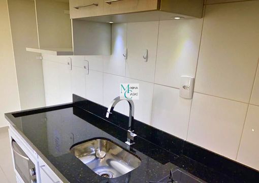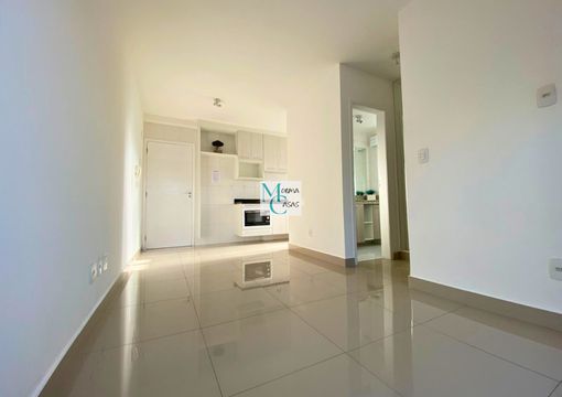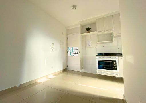 Apartamento de 01 dormitório com sala integrada com vista panorâmica, cozinha, lavanderia 01 banheiro e garagem com 01 vaga demarcada.