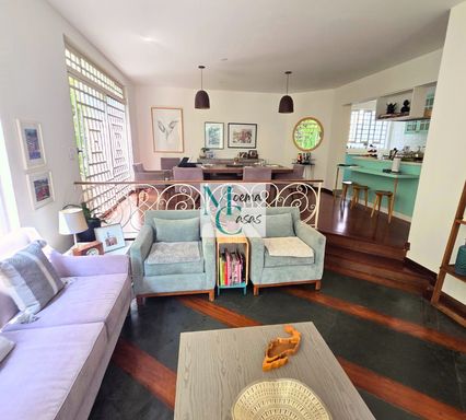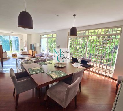 A área social é composta por 03 amplas salas, todas com generosas janelas voltadas para o quintal arborizado, proporcionando integração fluida com o verde proporcionando abundante iluminação e ventilação natural.