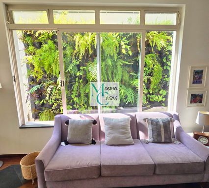 The social area presents three spacious living rooms, all featuring large windows facing the lush garden, allowing a seamless greenery connection, as well as abundant natural light and excellent cross-ventilation.