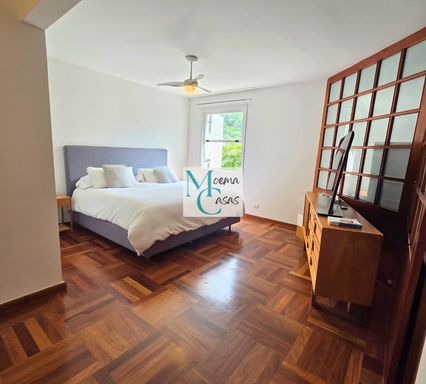 In the private wing, the residence offers five generously sized bedrooms, including two suites, with views toward the treetops of Ibirapuera Park, creating a unique atmosphere of privacy, tranquility and well-being — a true urban retreat in the heart of the city.