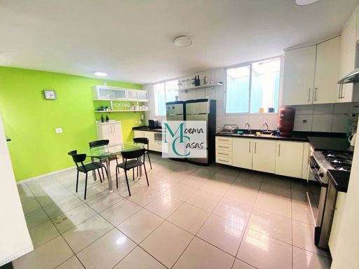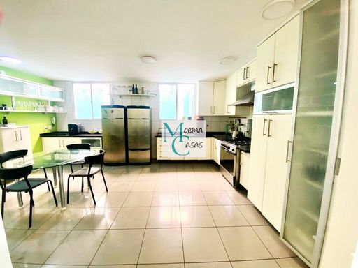 Ampla copa-cozinha completa de armários, também integrando a salas.