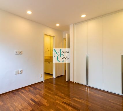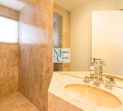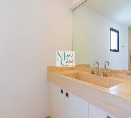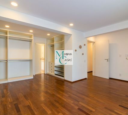 No piso inferior, a imponente suíte master se destaca com amplos closets independentes e banheiros Sr. e Sra., proporcionando máximo conforto e privacidade. O andar conta ainda com living com lareira, sala de jantar sofisticada, sala de almoço, cozinha planejada, área de serviço completa com dependência para funcionários e suítes adicionais espaçosas.
