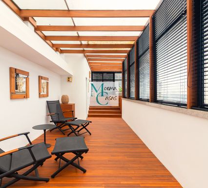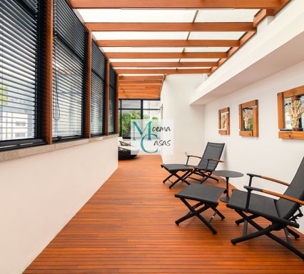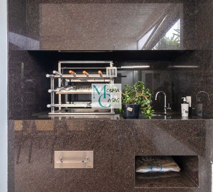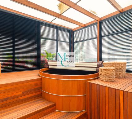 O piso superior é um verdadeiro refúgio de luxo: um living amplo com acabamento em madeira, deck em cumaru, SPA privativo com ofurô, sauna úmida e paisagismo diferenciado. O terraço envolve uma espetacular área gourmet com churrasqueira e segunda cozinha completa — perfeita para receber com exclusividade.